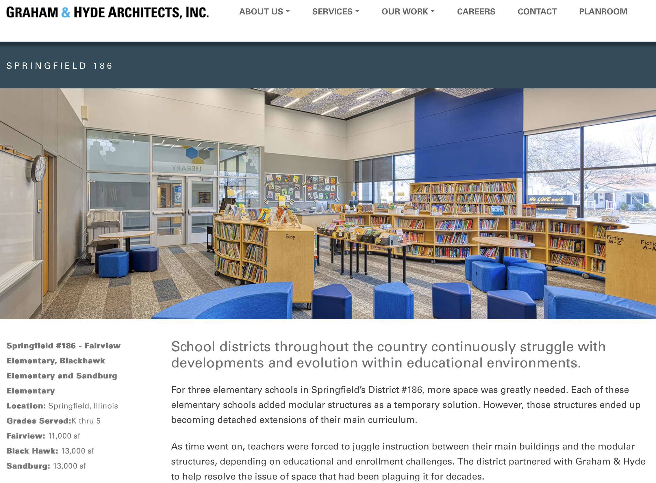 Project sheet featuring the renovations of several Springfield schools by architect Graham&Hyde to enhance education spaces